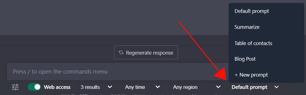 In the bottom left, click the arrow button and click [New prompt]. In the new window, click the NEW button to create a new prompt.
